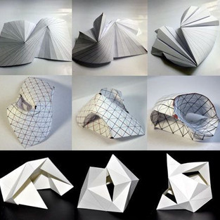 After moving forward from our living hinge concept, I wanted to explore similar modes of movement and flexibility but in a more free flowing form. I began looking in to how I might implement this is respect to the brief and my chosen category, being the programmed pavilion. The brief calls for a paper pavilion, this got me thinking about how might my concept play in with 'paper' demand, in an ironic way. I then found inspiration of origami, and certain structures which used this free flowing form and folding methods in the design of spaces.